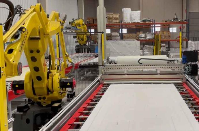 La “línea robotizada para refuerzo KOR”, es una clara apuesta de innovación con el fin de aportar una solución tecnológica probada, enfocada a una necesidad propia del sector cerámico cada vez más orientado hacia los formatos XXL La línea, íntegramente desarrollada por Keeltek, está pensada desde el primer momento teniendo en cuenta la máxima eficiencia productiva y el respeto con el medio ambiente