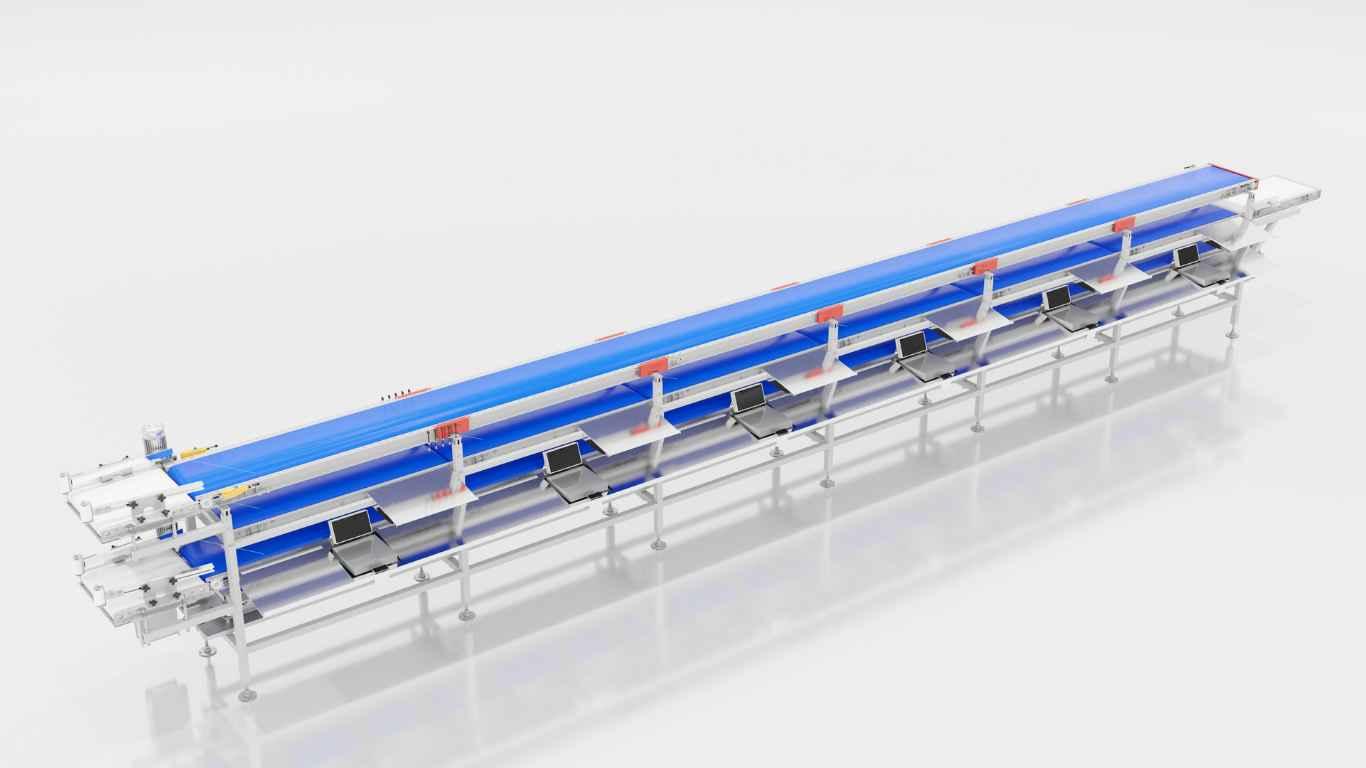 Línea para triaje, pesado y reencajado de bandejas