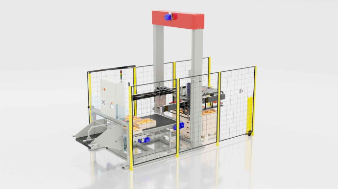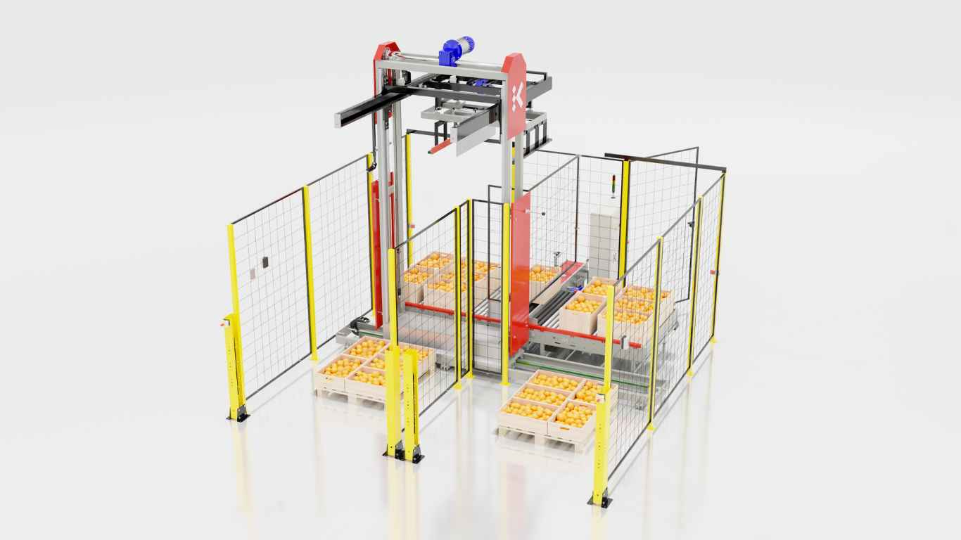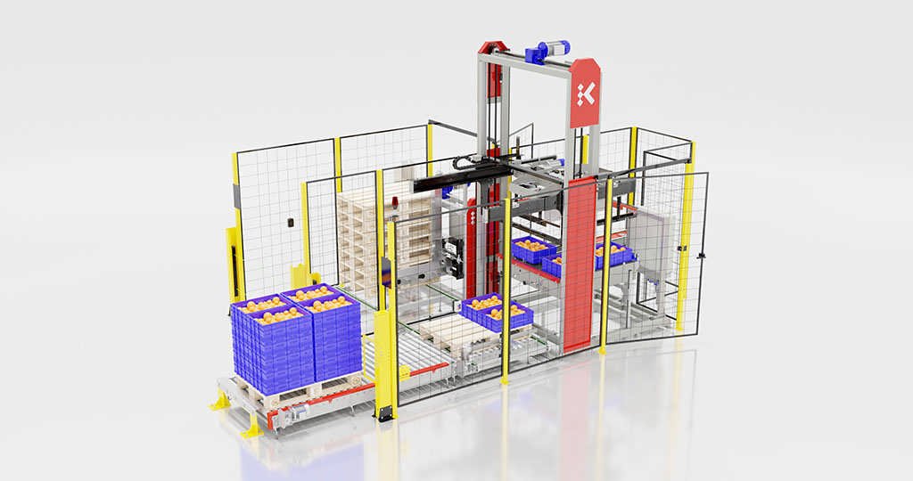 Capaz de paletizar mosaicos complejos y prácticamente cualquier tipo y tamaño de caja de plástico, madera y cartón